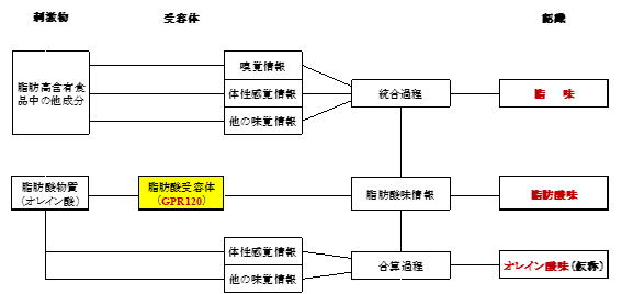 一方、味もあるはずとの常識もあったことと、脂肪の分解産物であるオレイン酸などの長鎖脂肪酸が脂肪酸受容体の刺激物となることが知られるようになると1)、脂味の存在が注目されるようになった
